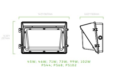 EiKO 12110 - WPS/PS44/7FCCT/HD/PC/BZ - LED Wallpack Standard Powerset - Wattage 15/28/40/44W - Selectable CCT 30/40/50K - Bronze