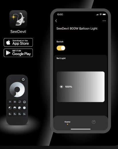 - Dimmable wireless remote, Download SeeDevil App, Manual control options